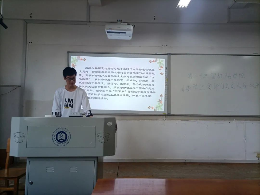 会议伊始,六位团委员工会主要负责人依次上台发言。朱文鑫认为员工会工作离不开责任感、集体荣誉感、奉献精神,应当不畏艰难,大胆去做,作为团委员工会第一负责人,朱同学详细铺排了后续员工活动,“到人到事到时“。冯俊龙和白宇鹏表达了对新一届员工会的美好期待,也对分管部门提出了具体的要求。严晓旭就权益服务部和宿舍管理部之前存在的问题作出说明,并要求员工会成员能谨言慎行,认真对待每一项工作。李郑华就员工会的风气与礼仪问题提出相应要求,提醒各位部门负责人以身作则。赵波对暑期社会实践活动做出说明,并动员同学们积极参与,打造机械特色实践品牌。