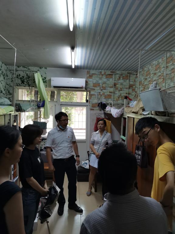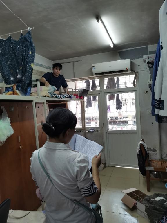 随后,刘书记和全体辅导员分成3个小组深入员工宿舍开展安全大检查。检查组认真查看了员工宿舍封门、安全和卫生情况,并与暑期留校员工进行了交流,了解他们的学习、生活安排。查寝老师提醒员工要牢牢树立宿舍安全意识,要做好疫情防控和防火、防汛、防盗、防诈骗等工作,叮嘱陆续离校的同学们关好门窗,在归家途中小心防范,确保自身安全,到家后及时报一声平安!