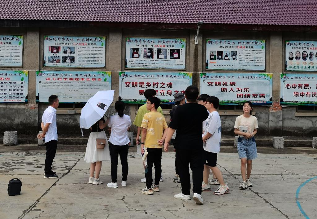 最后,实践队前往富池镇港下村参观。港下村曾经因矿产资源丰富,最后,实践队前往富池镇港下村学习,港下村曾经因矿产资源丰富,被称为鄂东南第一村,如今,因绿色发展渐成气候,被评为湖北旅游名村和全国文明村。柯昌盛书记说:“十年前的富池镇港下村是以矿为生的鄂东南第一村,以有色金属来发展农村经济的,随着矿产资源逐渐枯竭,环境不断破坏,港下村陷入了发展困境,两委班子换届以后,痛定思痛,想怎么样把农村产业进行转型,从有色金属转向绿色产业发展。”李海霞是村里的老党员,绿色转型她是村里的先行者。前两年,李海霞跟着村两委外出学习考察途中发现了桑葚产业的商机,回来后便开始购苗栽种。她说:“村两委提出搞旅游产业发展,搞水果采摘,村民想干不敢干,大家不敢干的时候,我们党员干部带头,像我们的养殖户,黄桃基地,都是党员发挥了引领作用,群众看到我们干得热火朝天,他们也跟着干起来了。”乡村振兴产业兴旺是基础,生态宜居是关键。富池港下村从环境入手,首先从当家塘、路灯、绿化,所有的公路,所有的水沟、水塘都有绿化带跟进,把水泥路做到了老百姓家门口,实行网格化管理。同时,港下村充分发挥基层党组织战斗堡垒作用,积极开展党员五帮一争活动,通过帮政策咨询,帮产业发展,帮邻里矛盾调解,帮做好环境卫生,帮乡风文明建设,努力争做优秀党员,切实改善村民的生活环境,积极提升绿水青山的颜值。港下村以他独居特色的党支部领导特色打造出了村干部带头干,老党员示范干,村民一起干的好氛围。也正是有这样的优秀的党建文化,才能建设这样的“美丽乡村”。