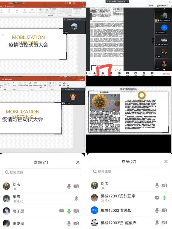 最后,同学们和老师进行了在线交流,各班班主任提醒同学们务必高度重视并严格落实疫情防控工作,认识到病毒传播的危害,坚持生命至上的观念,落实防控工作要求,落地防控工作责任,督促员工接种新冠疫苗以建立安全保障,同时不要出现违反公司纪律的行为,警惕疫情期间的电信网络诈骗。