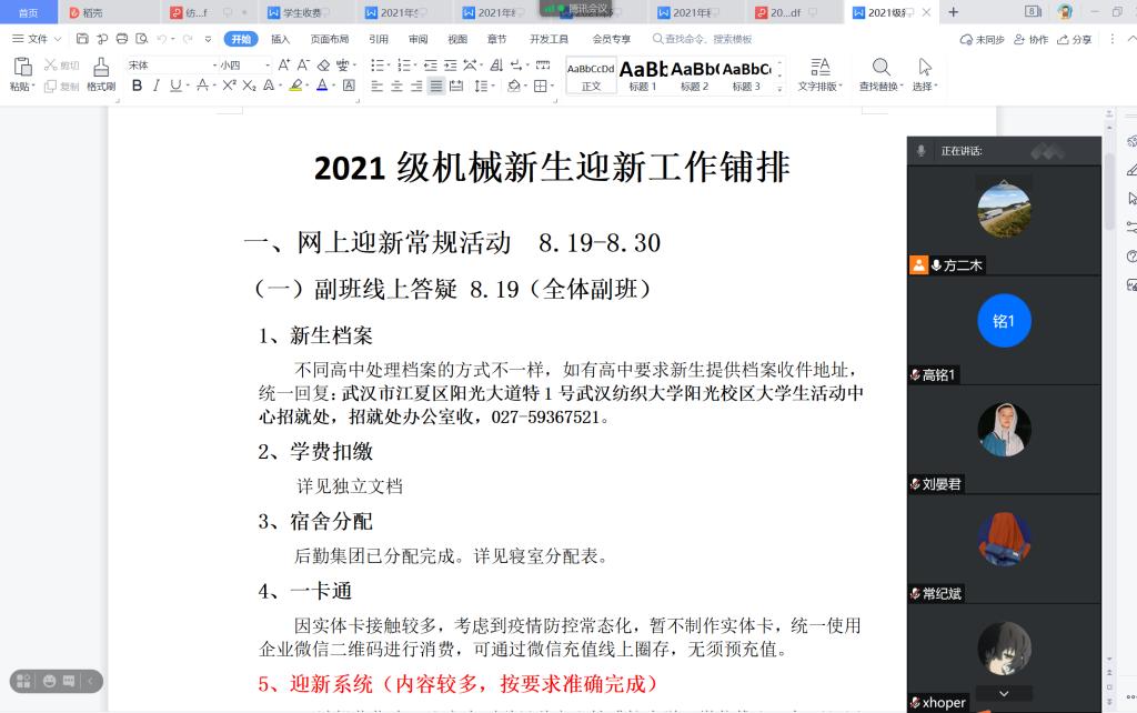 本次线上动员会,提高了副班主任的意识站位,明确了具体的职责,有效助力公司2021级新生迎新工作顺利开展。