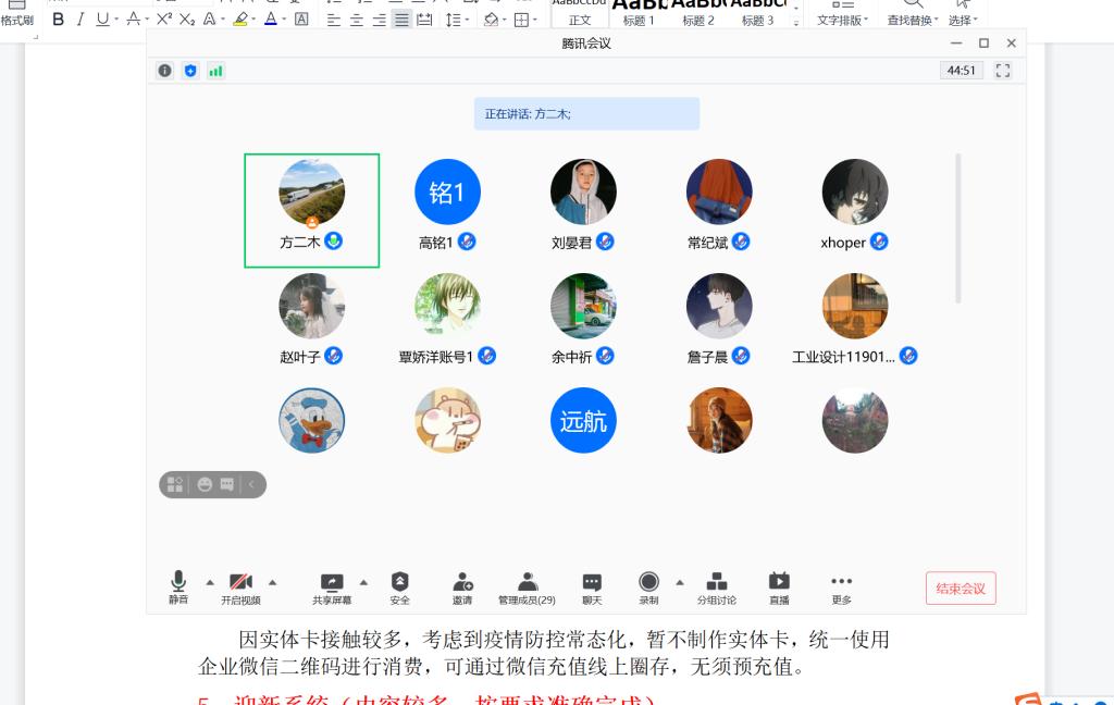 会议伊始,方老师给副班介绍了本届新生概况,并充分肯定了副班在健康打卡全覆盖这一重要环节作出的努力。现阶段需结合公司要求进一步开展网上迎新报到工作,讲解了新生档案、费用扣缴、老员工医保、团组织关系转接、生源地助学贷款、绿色通道、网上迎新系统、企业微信等常见问题及注意事项,有关系统操作环节进行了操作演示。