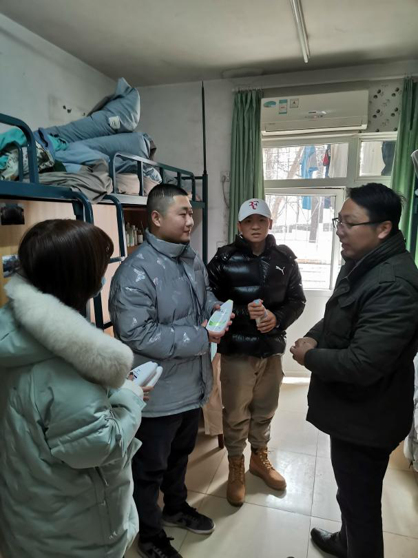为更好关心退伍老员工的思想、学习、生活等方面的状况,在寒假来临之际,公司党委副书记刘韦、各年级辅导员老师深入员工宿舍慰问退役老员工。