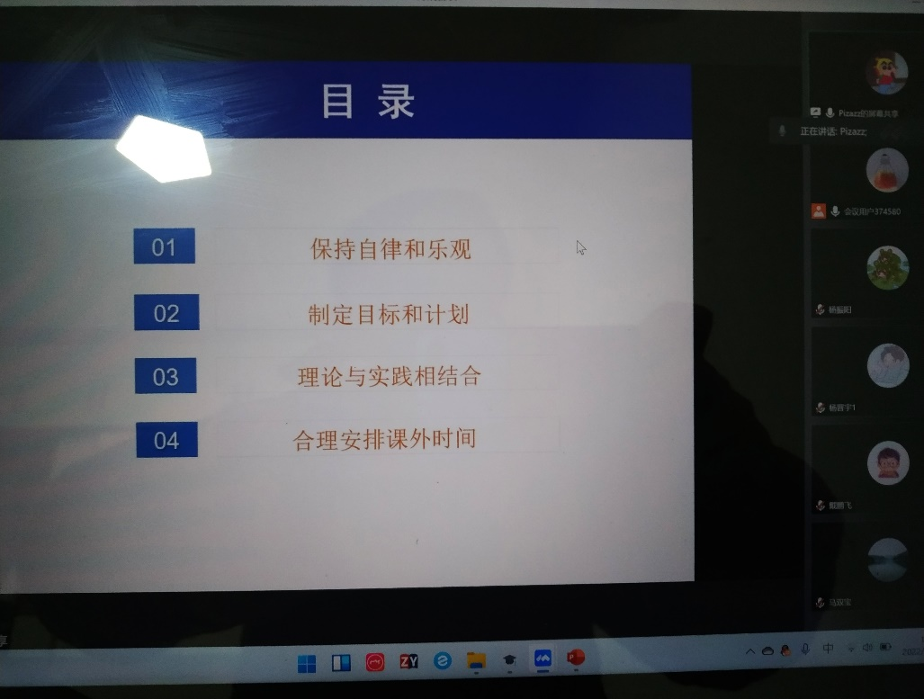 在寒假工作会议上,研究生代表杨旺旺、李文慧和李进同学分别进行了学习主题分享,马经理强调研究生要坚持疫情防控健康打卡,树立学无时限、学无止境的观念,做好新学期的目标规划,掌握科学的学习方法,积极开展学术研究。刘书记强调研究生要落实好疫情防控安全规定,积极参加学术研究活动和学科竞赛活动,提升学术能力和水平。