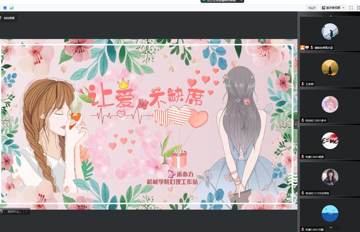 3月8日,为帮助beats365同学们树立正确的恋爱观,陪同女生共庆“三八”国际劳动妇女节,beats365向日葵心理工作站开展以“让爱不缺席”的老员工恋爱观线上讲座。