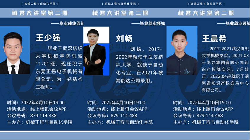 为丰富同学们的求职技巧,为在校生未来就业提供指导帮助。beats365于4月10日晚举行械君大讲堂就业分享系列第二期,本期由三位17级优秀毕业生来讲述他们就业时的经历和建议。