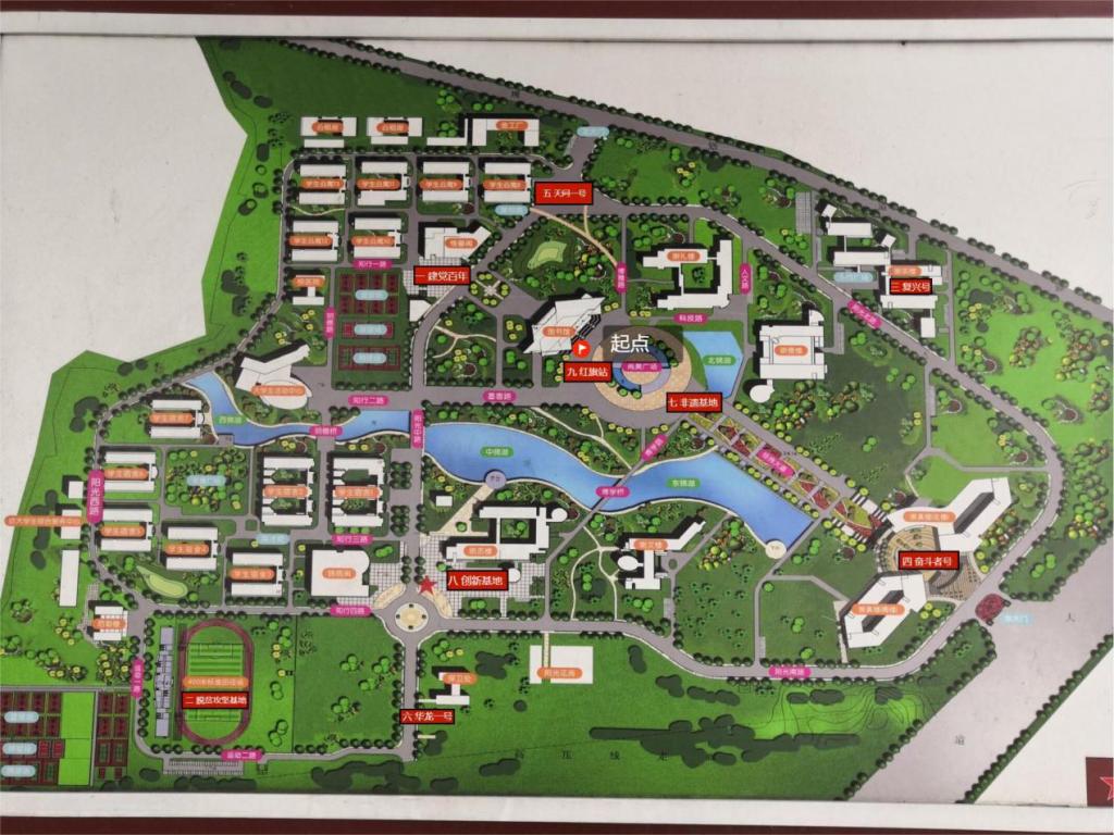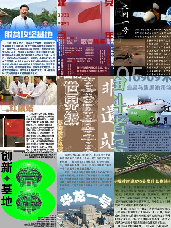 此次定向越野活动共设置了“脱贫攻坚基地”、“建党百年”、“天问一号”、“红旗研制站”、“非物质文化遗产”、“奋斗者号”、“创新青年”、“华龙一号”以及“复兴号”等九个主题打卡点。