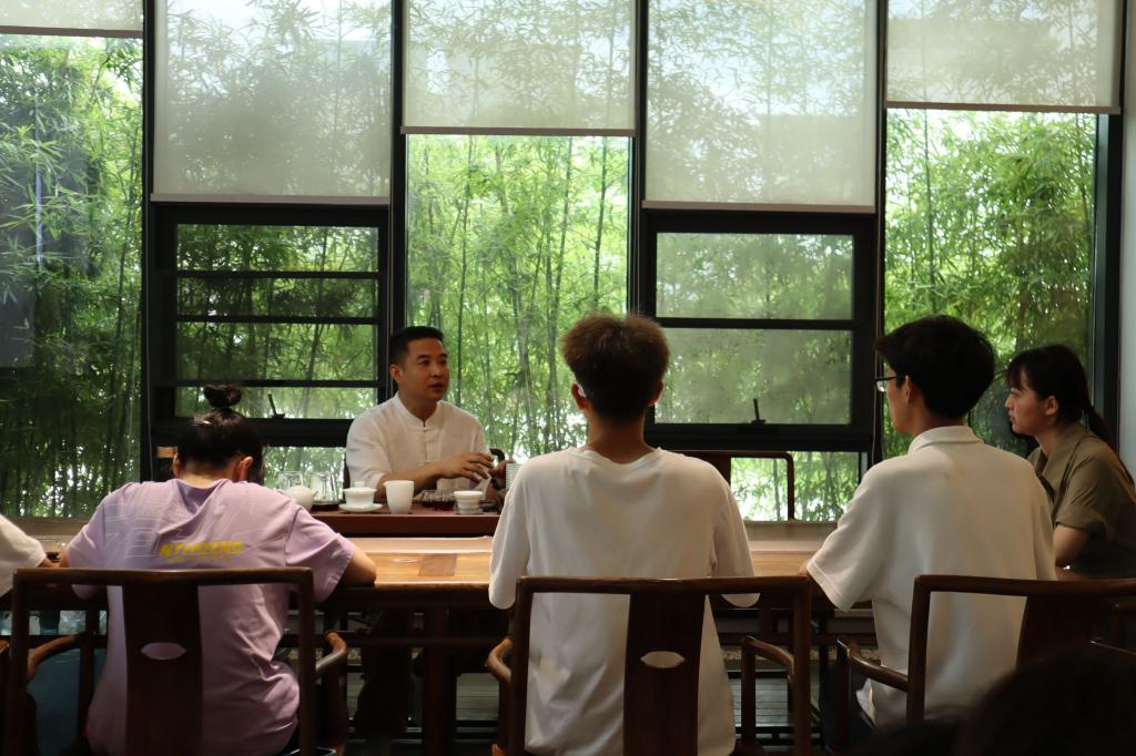 参观完万亩茶园景区后,团队来到了大德和青砖茶公司,该公司的甘总向本团队介绍了公司的一些创新型产品,同时也向本团队讲解了煮茶、泡茶的过程。本团队结合和自己的了解提出了部分疑问,对此,甘总耐心讲解。问题一,该公司是做茶产业的前端吗?公司是集研发、生产和销售于一体的,公司有完备的产业链,各方面都有着专业的团队;问题二,在茶的味道方面有偏向年轻吗?公司是率先进行更新换代、进行创新的,包装也实现了年轻化。并且茶的品质不会因为更新而降低。针对了市场需求进行了调节。产品价值有高有低,根据人群需要进行改良。