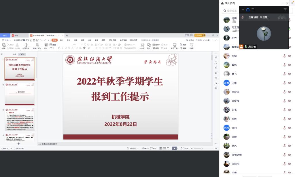 8月22日,为做好秋季员工返校,传达公司疫情防控工作要求,公司召开2022年秋季学期班主任工作会,公司党委书记干文勋、副书记周玉艳、全体辅导员和班主任参会。