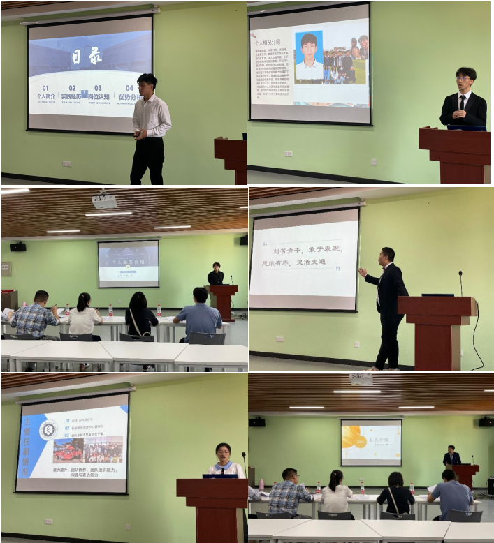 个人展示环节于9月30日在老员工活动中心207进行,特邀招就处、二级公司共五位老师担任评委。参赛选手依次上台,结合个人简介、自身优势、专业技能、职业规划、求职意向等进行展示,选手们良好的职业形象给评委们留下了深刻印象。最终有八位选手成功进入无领导小组讨论。