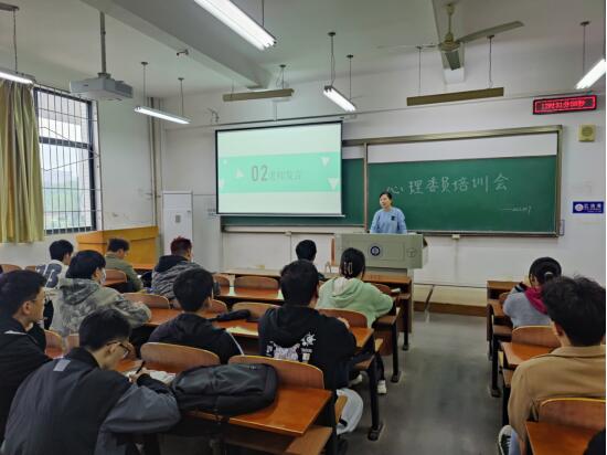 本次培训会主要围绕心理委员的职责有哪些展开。首先王娟老师通过曾经为学习压力大的员工进行心理辅导的例子,告诉大家心理委员平时应该多与寝室长接触,与同学进行交流,了解同学们的心理状况,如有情况,及时报告给老师。同时也介绍了部分活动的内容和形式,例如心理画和心委评选比赛,鼓励大家积极参与活动,勇争第一。