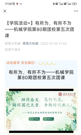占领多平台教育阵地。新时代老员工是使用网络媒体的最大群体,2022级新生辅导员从线上迎新开始,在公司官方公众号“萌萌大机械”、官方抖音号“机械剪影”及个人手机QQ空间、微信朋友圈发布多条思政教育相关推文,持续运用新媒体新技术推动思政课常态化、长效化;在员工常用的平台上,以活泼的语言、诙谐有趣的拍摄手法,制作发布与老员工息息相关的话题和视频,引导员工主动汲取积极健康的内容,建立阳光向上的世界观和人生观;组织员工团体拍摄制作了系列思政教育主题的视频,用老员工喜闻乐见的表达方式创新思政课形式,积极扩展网络思政课的多元形式。