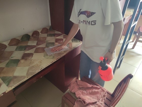 活动过程中,志愿者们拿着扫帚,铁铲,拖把,抹布,洒水壶等清洁工具,对新生宿舍进行了全方面的清理,大到地面阳台,小到洗漱台死角等不易被注意的地方,并大面积喷洒消毒水,为新生开学寝室生活工作保驾护航,志愿者们在活动过程中也热情高涨,积极打扫卫生,期待着新生的到来!