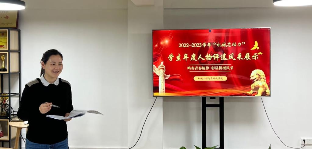 鸣奏青春旋律,彰显机械风采,2022-2023学年“机械芯动力”员工年度人物评选活动于4月2日下午,在四栋公寓“机智过人”员工成长服务站举行。公司党委副书记周玉艳,辅导员谢超、徐智航、肖锦、方林以及高年级员工干部代表朱文鑫、白宇鹏担任此次活动评委,冯娜等共17名优秀员工参与风采展示。