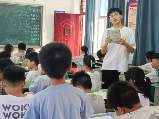但一到下课就是欢声笑语,像开闸的洪水冲出教室,奔向外面,三两成群,踏着轻风,你追我赶,你来我往。也有负责的老师在辅导勤学好问的员工,常常把办公室围的水泄不通,把一个字读上千百遍,将一道题讲与百人听,我将无我,奉献于子,这份大爱正是我们支教团队薪火相传且坚信之物。