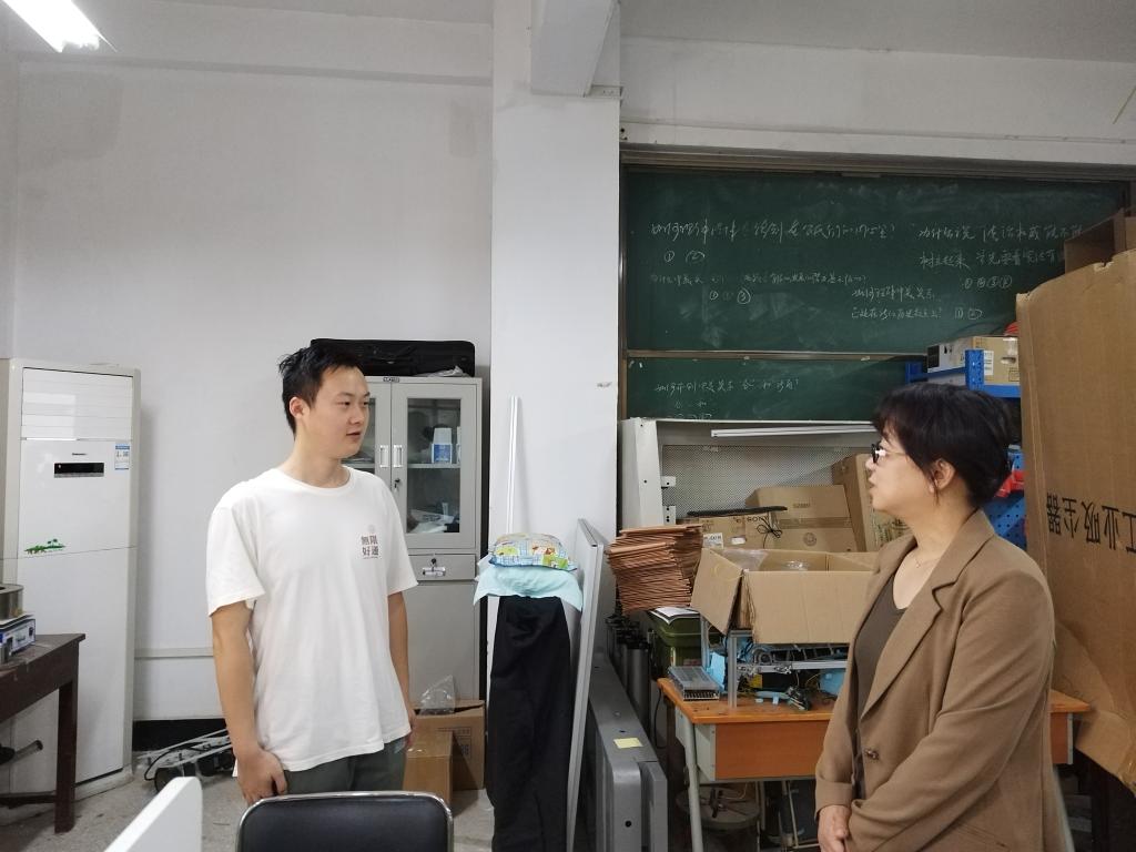 10月2日上午,研工部刘欣部长在林凡老师的陪同下走访beats365研究生工作室、实验室指导工作,值班辅导员谢超老师参加了走访工作。