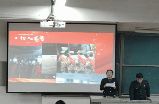 首先,陈鹏亮团队向我们介绍了他们的军旅生活、优待福利、个人感受、获得的成长经历,给同学们分享经历与感受,自己内心想法的逐渐变化,使同学们感同身受,鼓励有想法的同学们积极参加入伍
