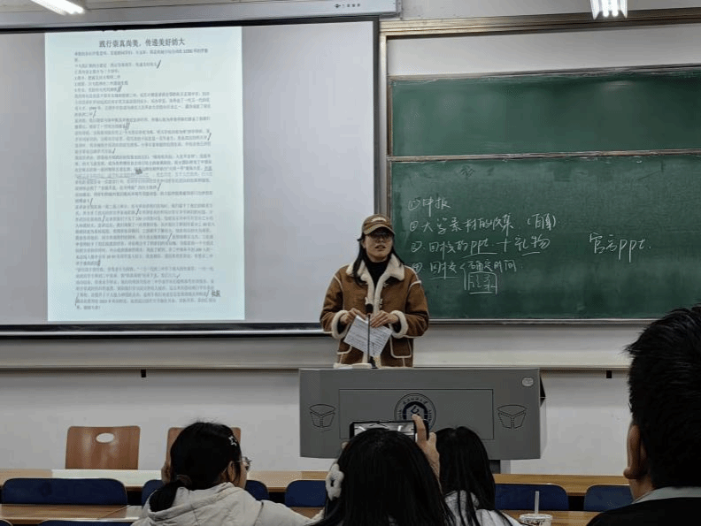 随后,刘奇学长向我们分享了他参加前一届活动的经历、所收获的的经验,对于一些没有方向的同学有很大帮助,引导了同学们的方向。讲解、分析了院赛以及校赛的考察内容和大致评选方向,指出寒假实践活动的具体实施细则,为同学们回母校宣讲提出了很有意义的宣讲建议。指引同学们宣扬武纺“崇真尚美”的公司精神并对高中母校表达由衷的感谢。