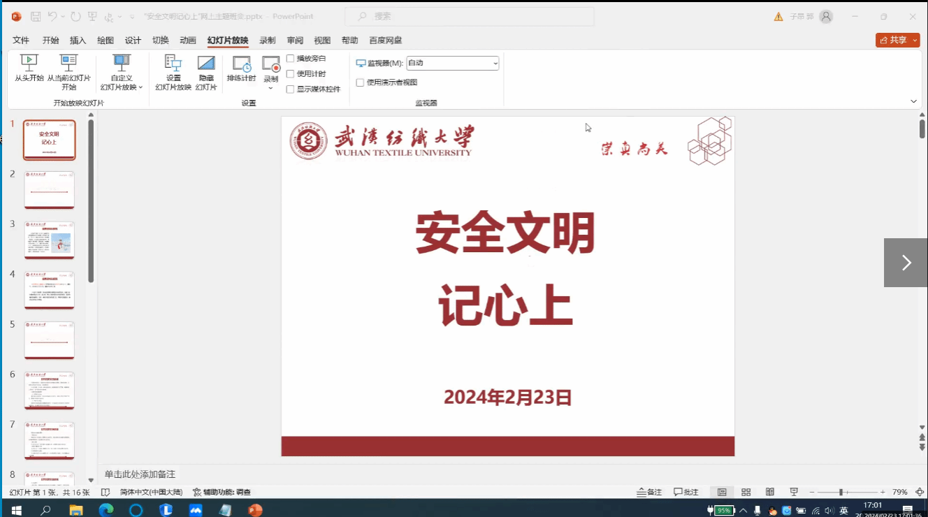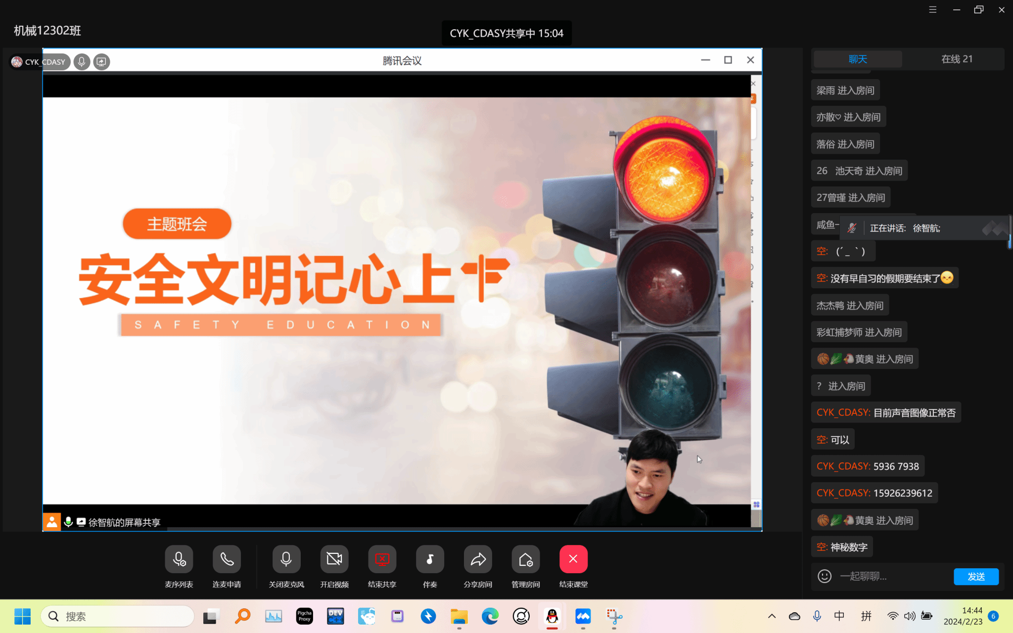 为做好2024年春季学期开学准备工作,提醒同学们注意返校日程、做好出行安全等各类防护措施,2月22日-23日,beats365各年级召开2024年春季学期“安全文明记心上”主题教育线上班会,会议由各年级辅导员和班主任主持,全体同学参会。