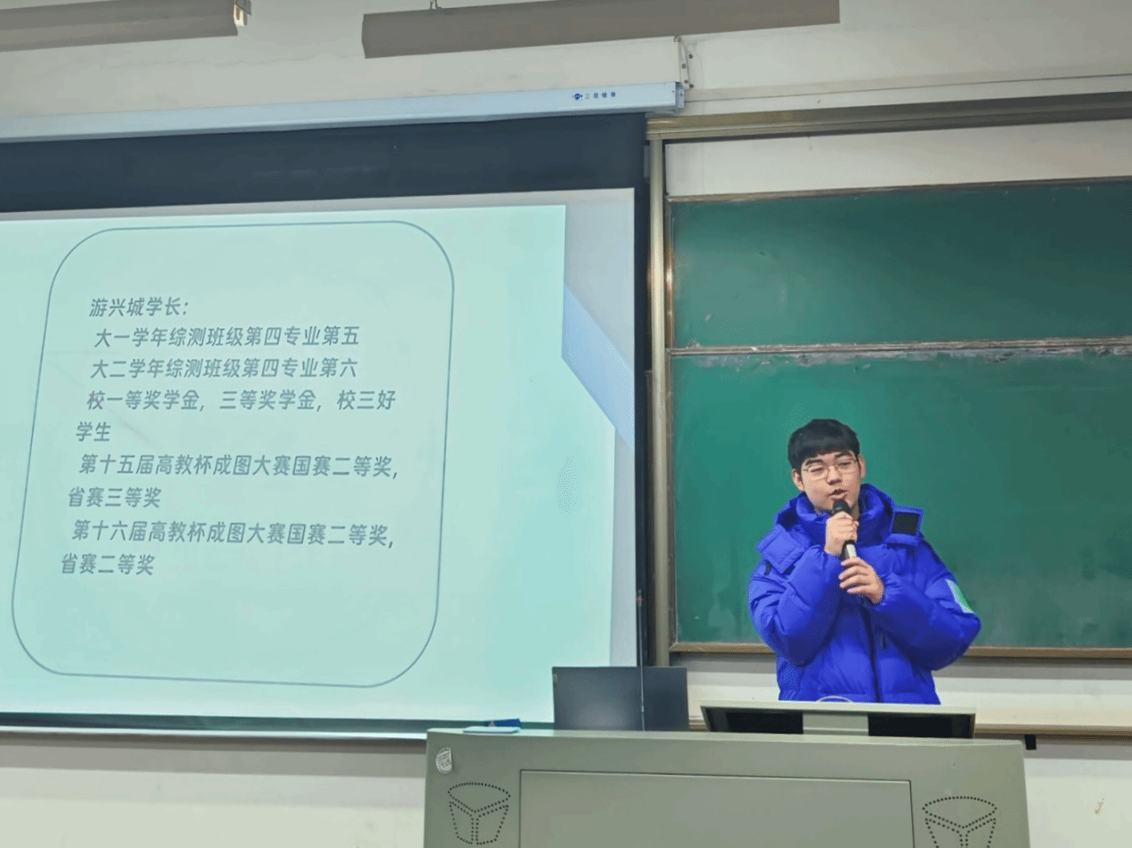 游兴城学长分享了参赛的经验并讲解了往届的相关必备知识,现场用软件建模示范校赛题目,为我们提供了宝贵的解题思路和比赛经验。参加宣讲会的同学们在现场对自己关于大赛的疑惑提出了询问,游兴城学长为大家现场答疑。