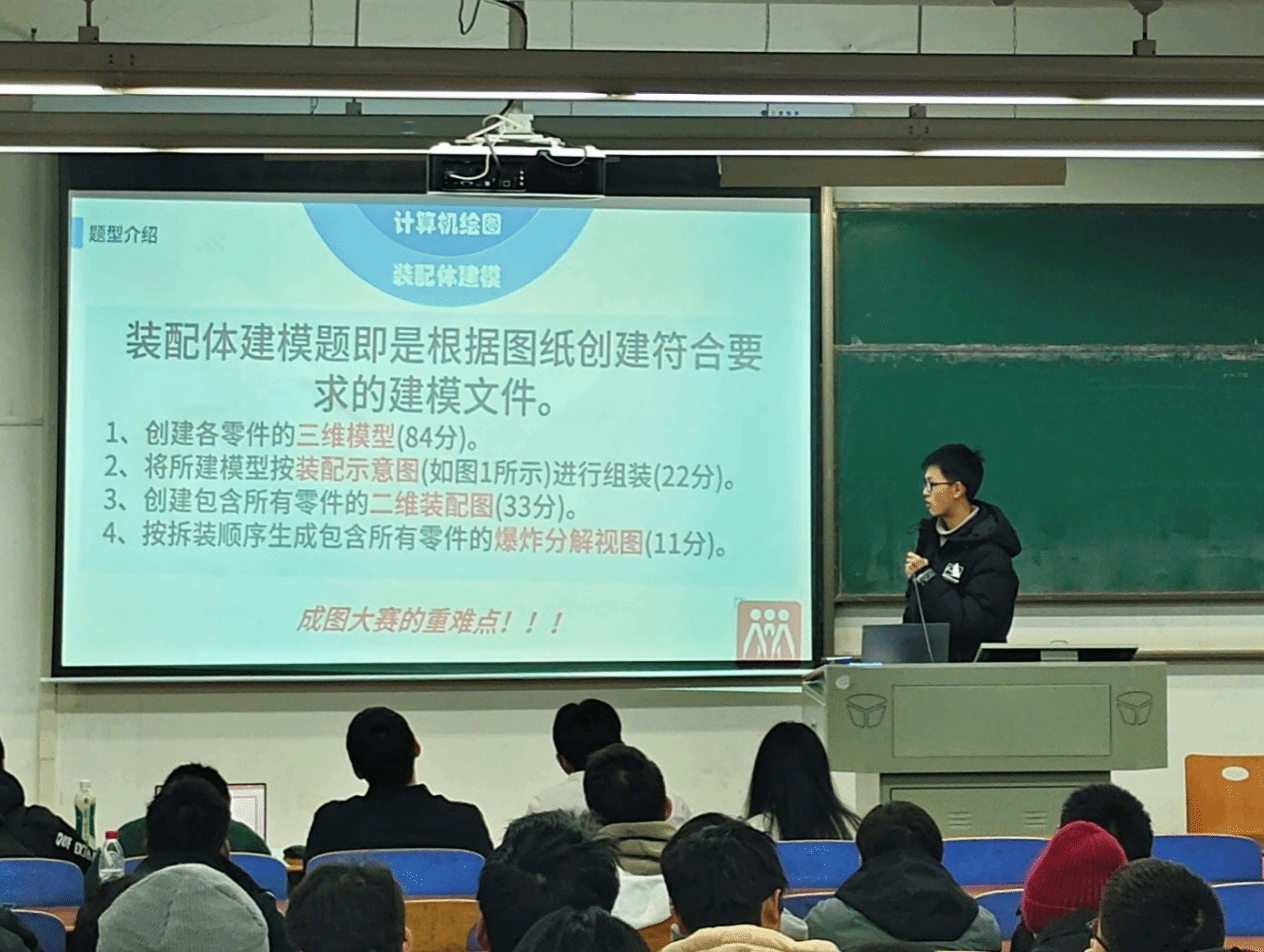 为增加对“成图大赛”比赛的了解,提高大家的竞赛意识以及积极性。beats365于1月5日晚在03-T102举办“成图大赛”宣讲会,2023级辅导员参加,陈敬星同学主持,陈永康、姜万坤、游兴城同学主讲,beats365及其他公司同学到场聆听。