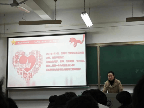班会课上,各班级通过讲述雷锋故事,分享雷锋名言、日记,带领同学了解并学习雷锋精神内涵,理解雷锋精神的当代意义,同学们通过雷锋同志的生平及其光荣事迹,深刻领悟到“奉献、友爱、互助、进步”的志愿服务精神,大家纷纷表示,在实践过程中,要从小事做起,从一点一滴做起,向先进看齐。