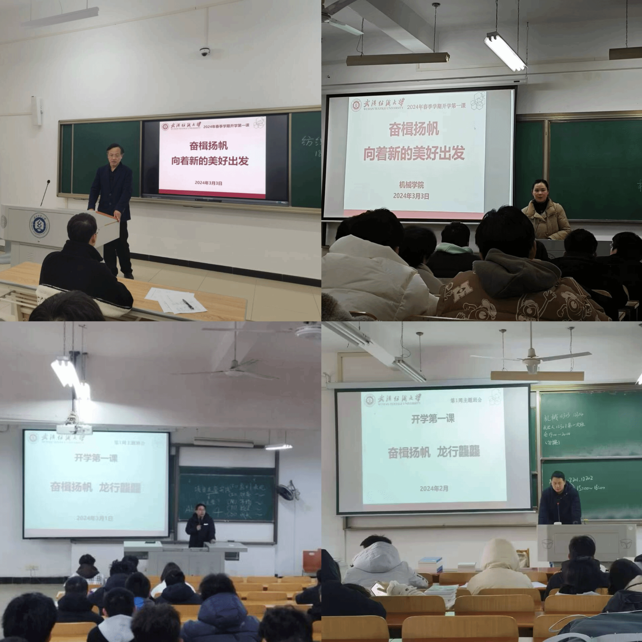 公司领导班子成员、骨干教师、辅导员和班主任深入员工当中开展“开学第一课”主题班会,以“回首来路,最是奋斗动人心”为主题带领大家一起回望2023年,引导员工要自觉胸怀“国之大者”“省之大计”“校之要情”;以“岁启金龙 凝聚成长共同体”为主题,与同学们一起开启2024年,新的历史坐标上,一系列关系国计民生的大事将在这一年发生;以“青春逐梦 昂扬龙腾新气象”为主题,教育员工新学期要做好成长规划,向先进看齐、向榜样看齐,增强心理健康素质,提高安全防护意识,增强自我防护能力,推进平安校园建设,预防各类安全事件发生。