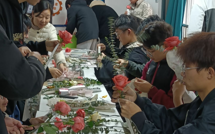 在制作过程中,大家一直激情高昂。有不少同学因为是第一次进行花束制作,动作不熟练,被花刺刺中很多回,但同学们都毫无怨言,脸上一直洋溢着笑容。经过大家的努力,一朵朵花被制作包装成了一束束精美花艺礼品。