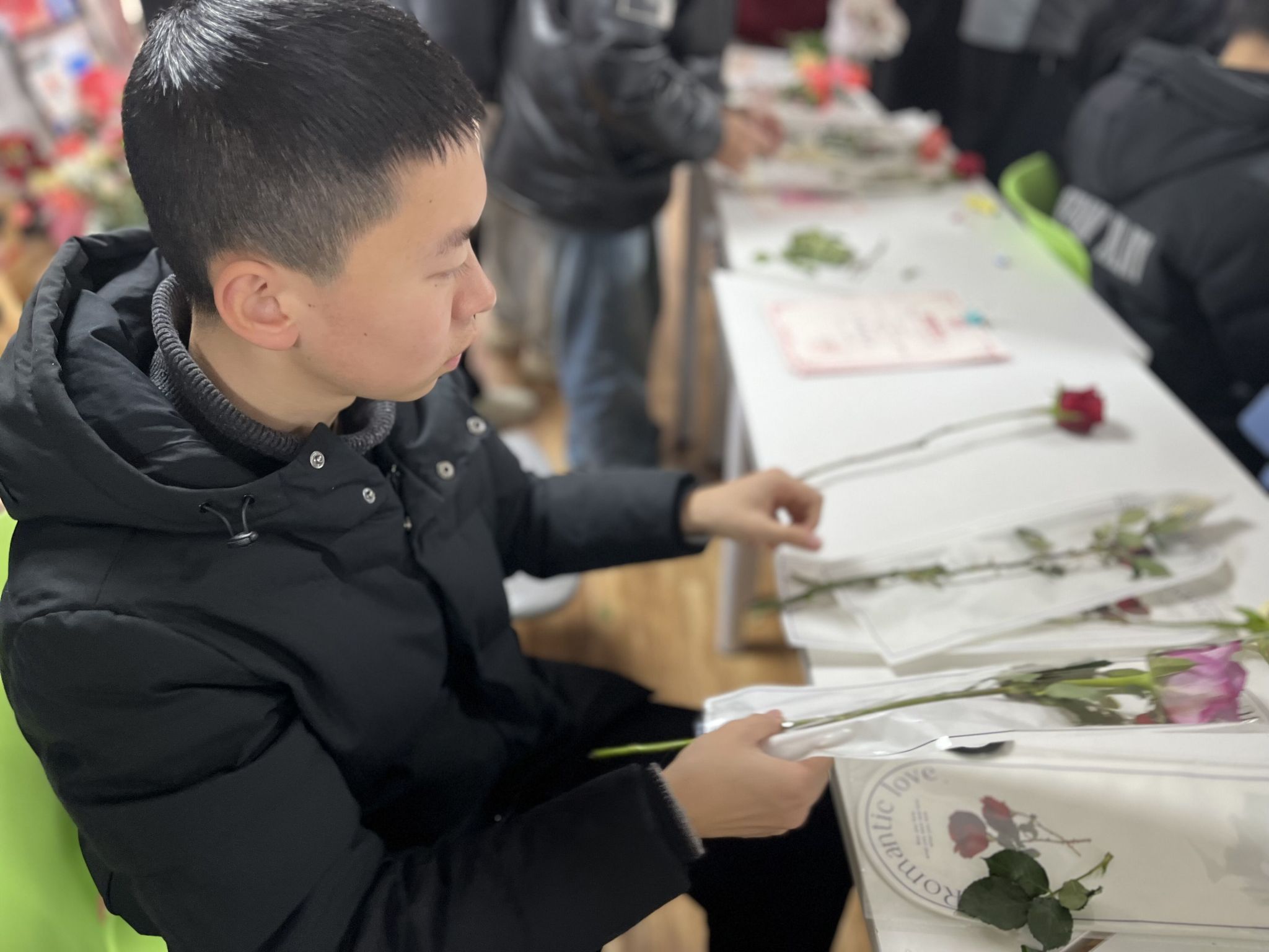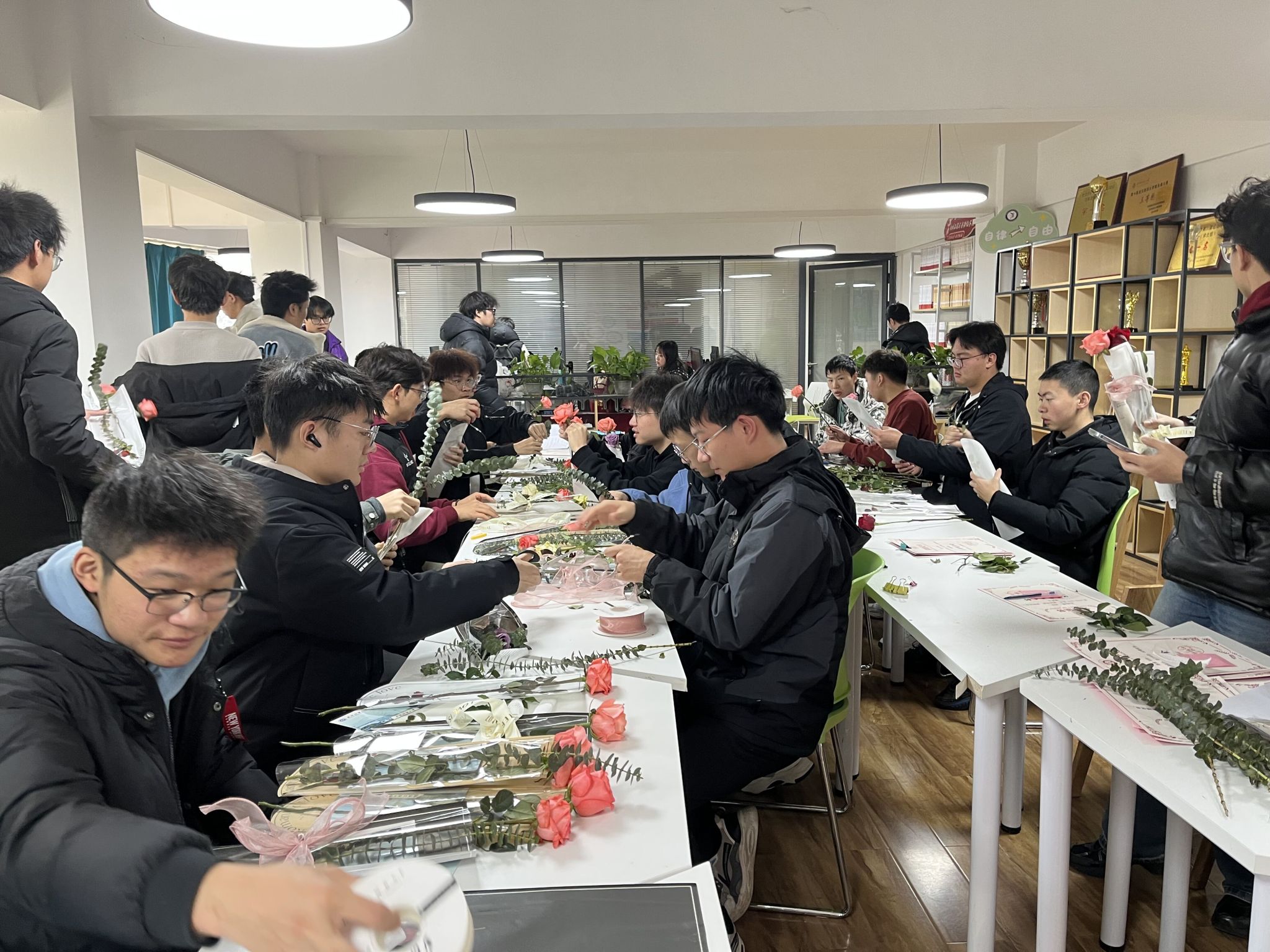 通过此次送花活动,在丰富同学们课下生活的同时,又促进了男生和女生的同学情谊。女同学们在收到这份花束礼品时很惊喜,心里也十分感动。愿往后的老员工活里,大家一起克服困难,走向更好的明天。