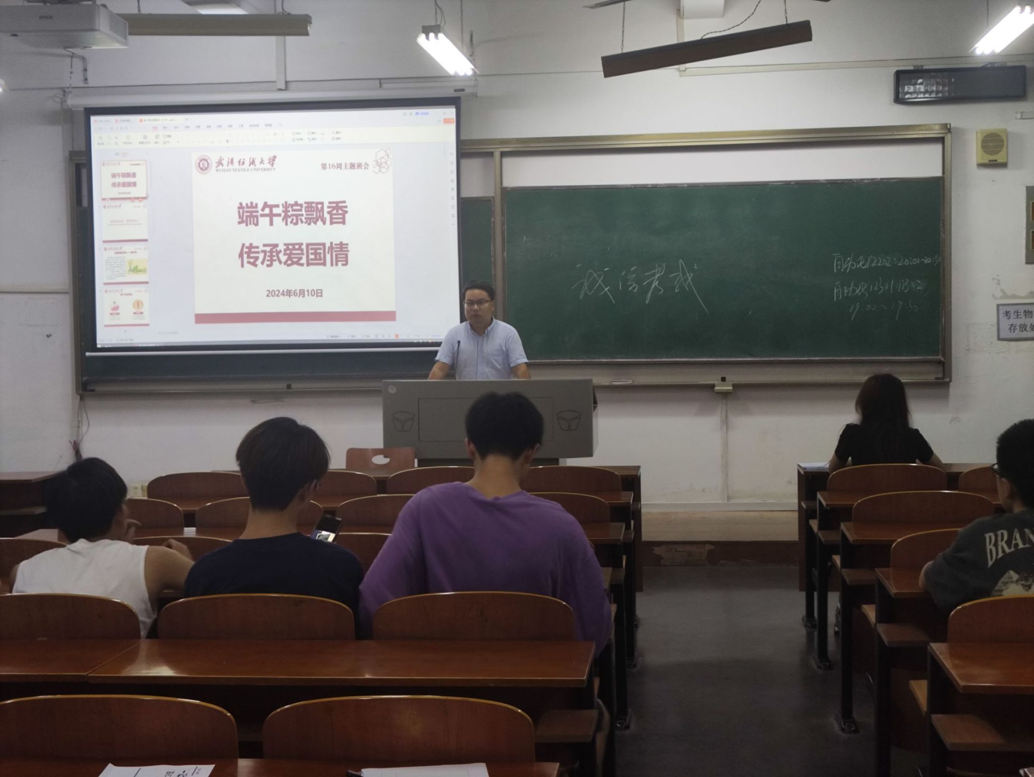 老师们首先介绍了端午节的由来,结合典故讲解了端午节赛龙舟、包粽子、挂艾草等习俗,加深对端午节文化内涵的理解,对中华优秀传统文化的认识。随后,老师们引用习近平总书记的语录,强调了必须坚持爱国主义和社会主义相统一、把爱国主义教育作为永恒主题、维护祖国统一和民族团结。最后,各班班长给大家展示了嫦娥六号降落月背并展开国旗的视频画面,介绍了月背国旗的研发历程,号召同学们向徐卫林院士学习,争取为国家科技进步做出自己的贡献。