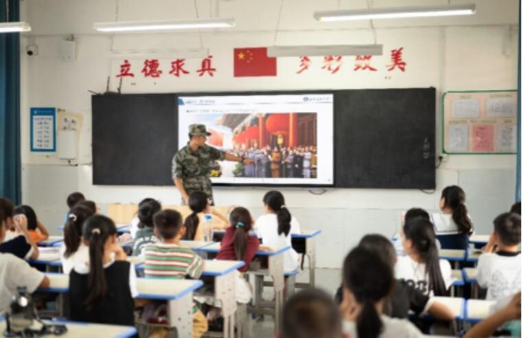 立正、敬礼、转身……beat365官网中文拓梦支教队志愿者老师于家辉为河南省洛阳市伊川县浥涧小学的同学们展示军姿之美,引发同学们一片赞叹之声。“老师,我几岁能当兵?”“老师,你打过仗吗?”乡村小学课堂秒变追星现场。