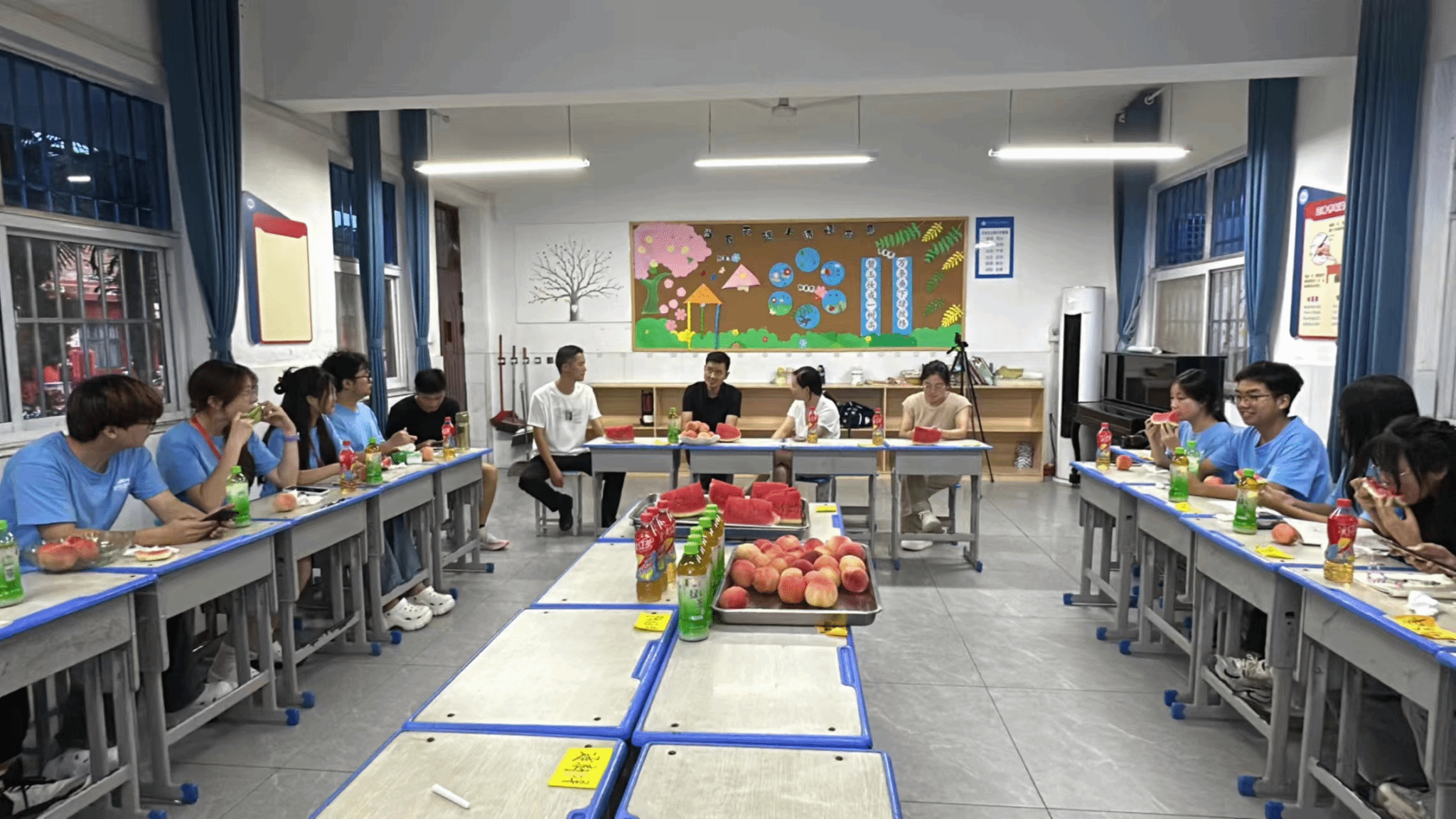 会议的最后,浥涧小学刑董事长对拓梦支教队老师们的辛勤工作给予高度评价,并且表示将进一步加大对支教工作的支持力度,为支教老师提供更好的工作环境与生活保障,共同推动暑托班的良好发展。此次支教老师座谈会不仅是一次经验交流亦是一场心灵碰撞,座谈会的圆满成功,不仅为拓梦支教队支教老师们提供了交流经验,分享心得的平台,也为后两周支教工作指明了方向。