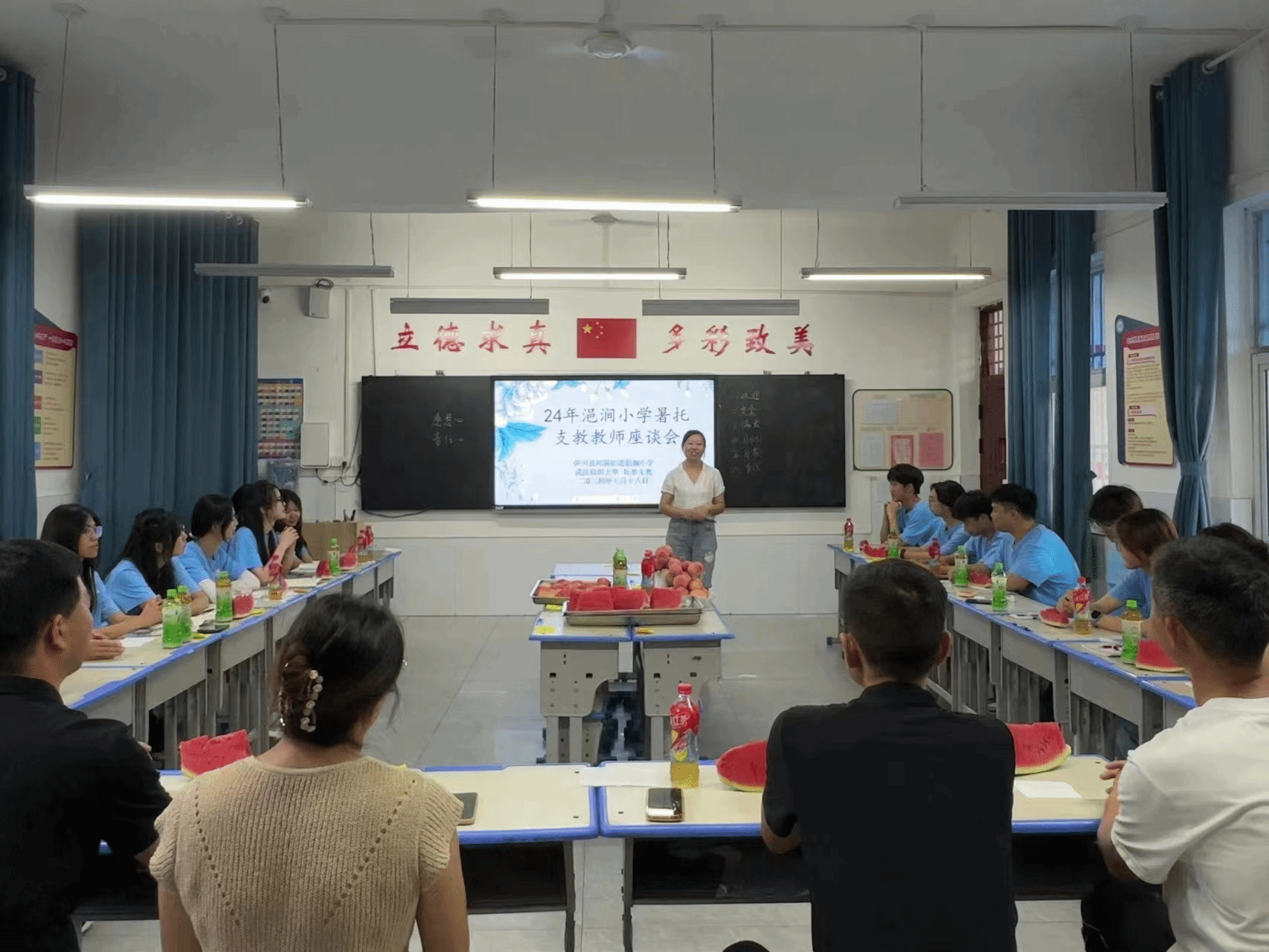 2024年7月18日,一场别开生面的支教老师座谈会在洛阳伊川县河滨街道浥涧小学成功举行,本次座谈会旨在各在校领导老师与beat365官网中文拓梦支教队小老师们深入交流支教经验,探讨教学新思路新方案,创新各类公司产品活动,为浥涧小学暑托教学活动注入新活力。