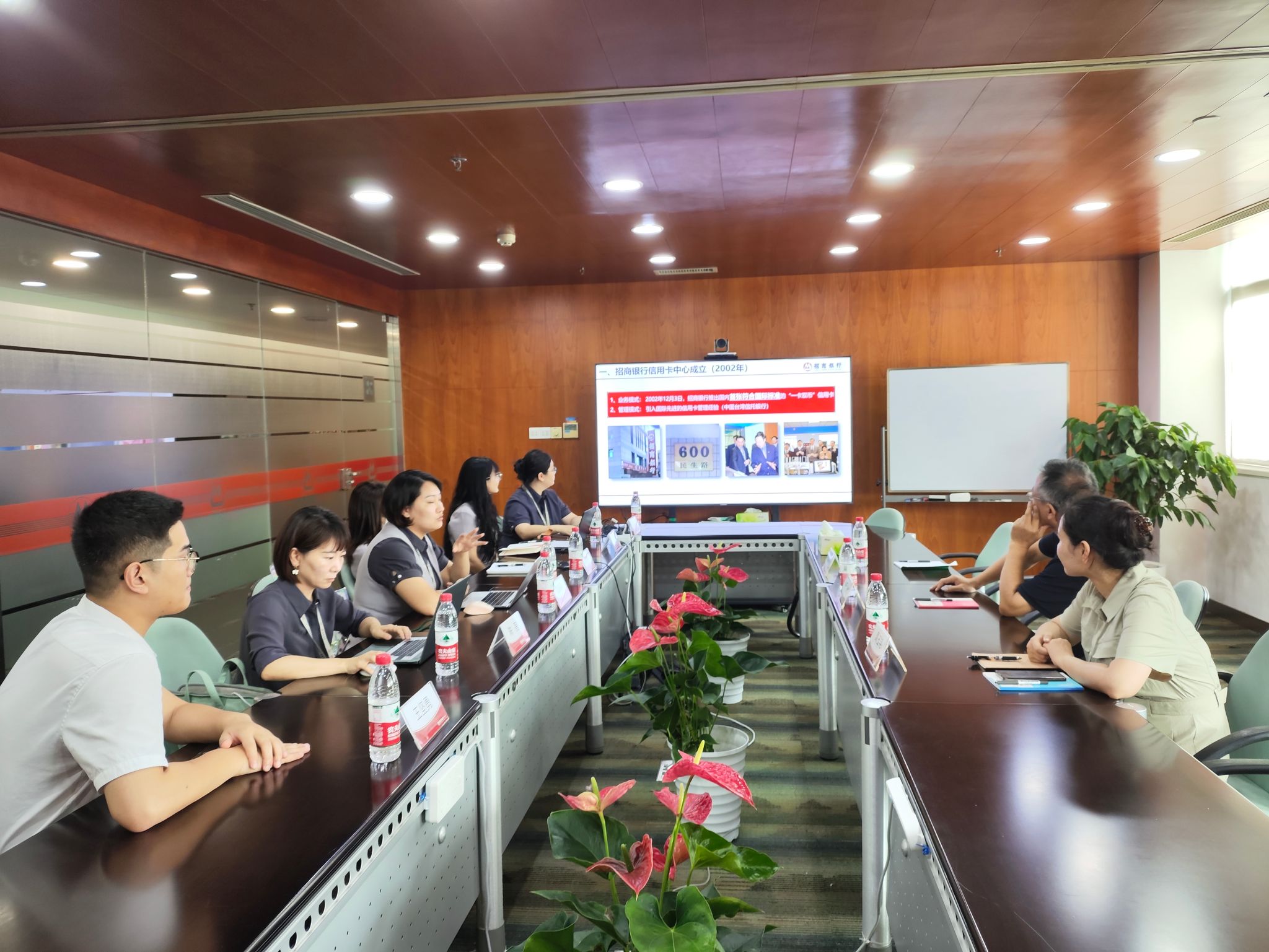 招商银行信用卡中心武汉分中心及在职员工等对公司一行的到来表示热烈欢迎。干文勋一行在招商银行信用卡中心武汉分中心新人团队经理陈亮、人事团队经理范颖颖、人事管理部经理国若楠等人的陪同下,实地参观了客户服务区、业务办理区、员工工作区以及授课室等场地,并就招行企业文化、管理理念及发展规划作了详细了解。