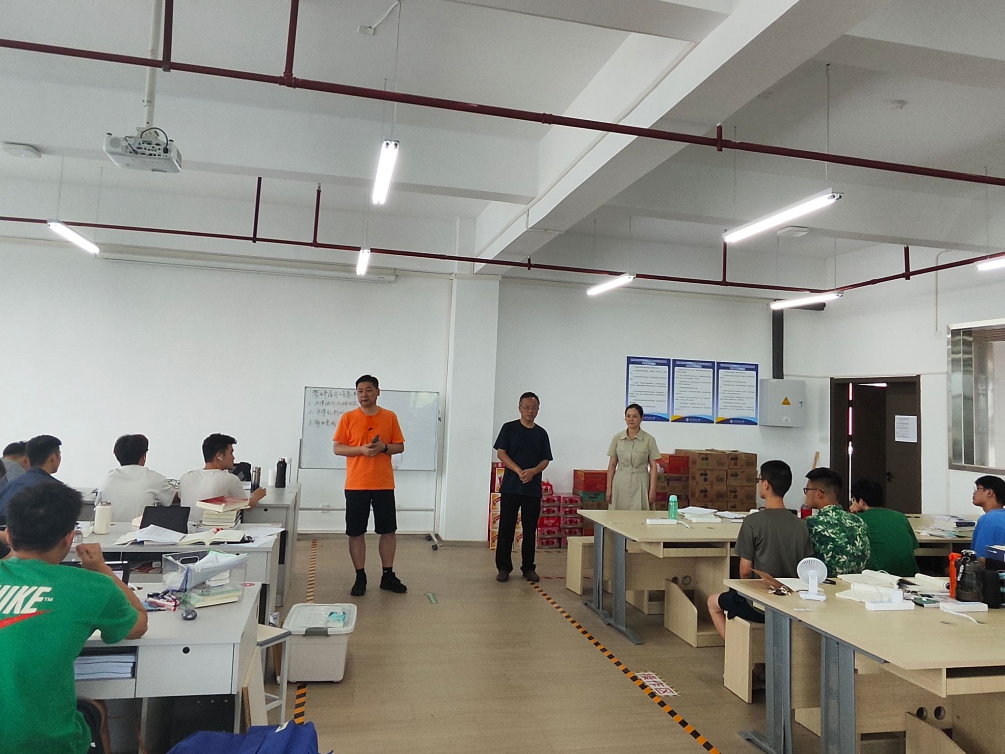 干书记鼓励同学们要坚定信心、脚踏实地、实事求是,准确把握自己的定位,选择报考上岸率高的院校,切实做好升学、就业规划,保持和辅导员和班主任的沟通、交流,同时也要严格遵守暑期留校期间管理。他强调公司领导班子高度重视留校考研备赛员工的学习和生活状况,全院的领导和老师会竭尽全力为留校员工做好后勤保障和服务工作,希望同学们认真学习,坚持到底。同学们纷纷表示,非常感谢公司领导和老师对大家的关心和慰问,他们将充分利用公司提供的良好条件,努力学习、学有所成。
