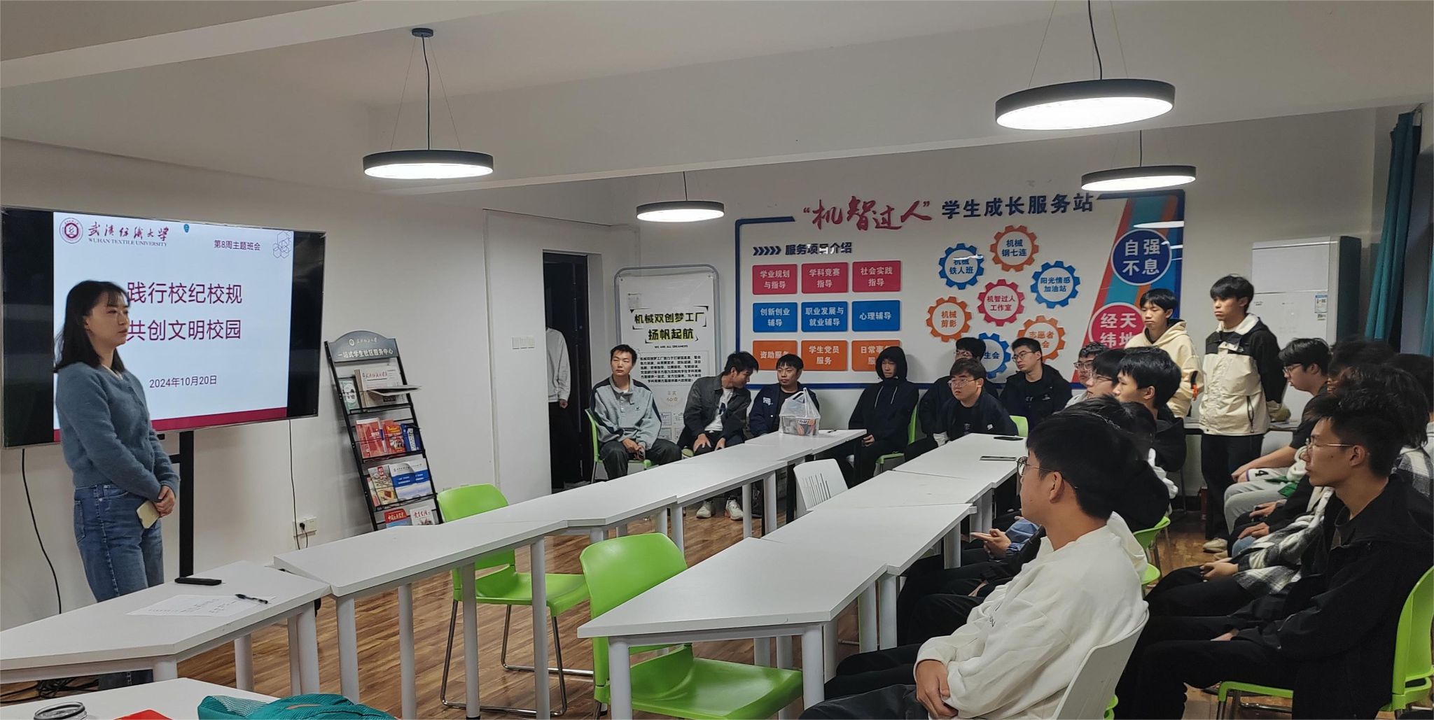 10月20日下午,公司开展“践行校纪校规 共创文明校园”主题班会。班会由辅导员、各班班主任主持,此次班会重点强调了校纪校规教育。