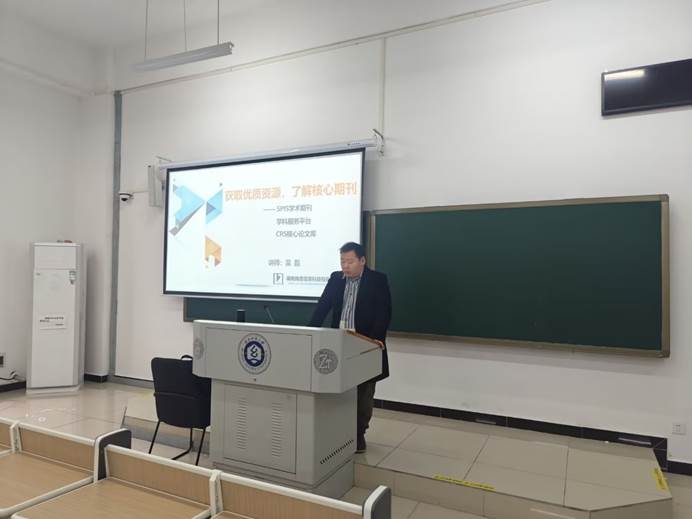 讲座伊始,吴磊讲师以其丰富的行业经验和专业知识,围绕SPIS学术期刊、学科服务平台以及CRS核心论文库等内容展开讲解。他详细介绍了SPIS学术期刊中所涵盖的前沿学术研究成果,指出这些期刊是同学们追踪学科动态、了解最新研究趋势的重要窗口。