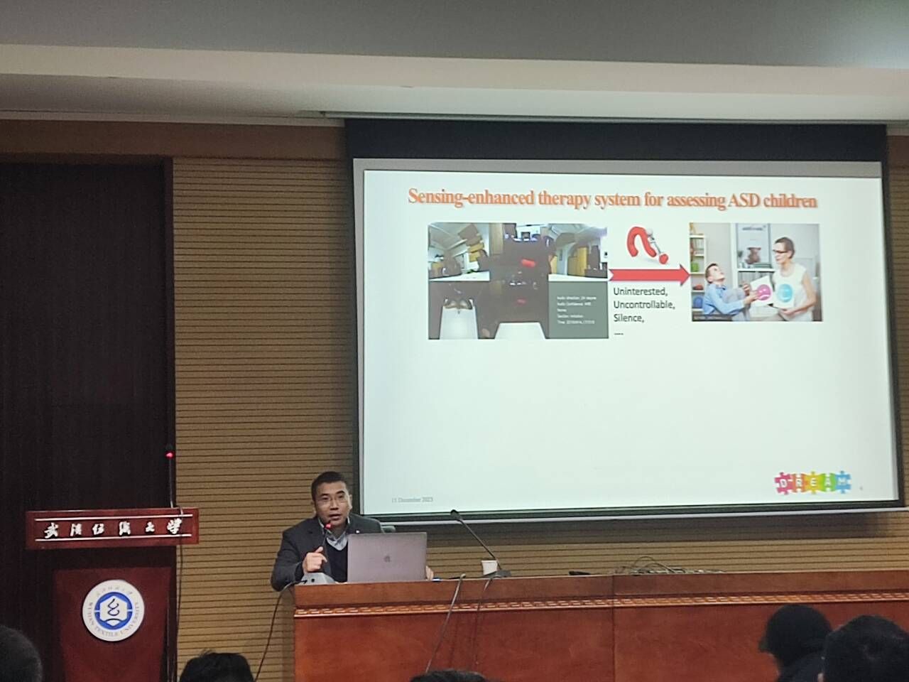 12月15日下午15:00,应公司邀请,英国朴茨茅斯大学的琚兆杰教授在行政楼二楼报告厅为beats365师生做了一场温情精湛的学术报告。本次讲座标题为“多模态感应与解释:增强机器人治疗系统”(Multi-Modal Sensing and Interpretation for Robot-enhanced Therapy System),旨在探讨先进技术在治疗领域的应用,尤其是针对自闭症儿童。公司党委常委王栋教授、公司干文勋书记和经理余联庆教授等师生代表出席了本次学术报告。