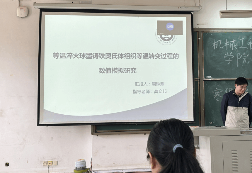 第三位周钟鼎同学介绍了他的研究课题“等温淬火球墨铸铁奥氏体组织等温转变过程的数值模拟研究”,采用了多种分析方法进行模拟研究。孙教授希望可以在目前工作的基础上继续阅读论文,加强与相同领域研究的对比。