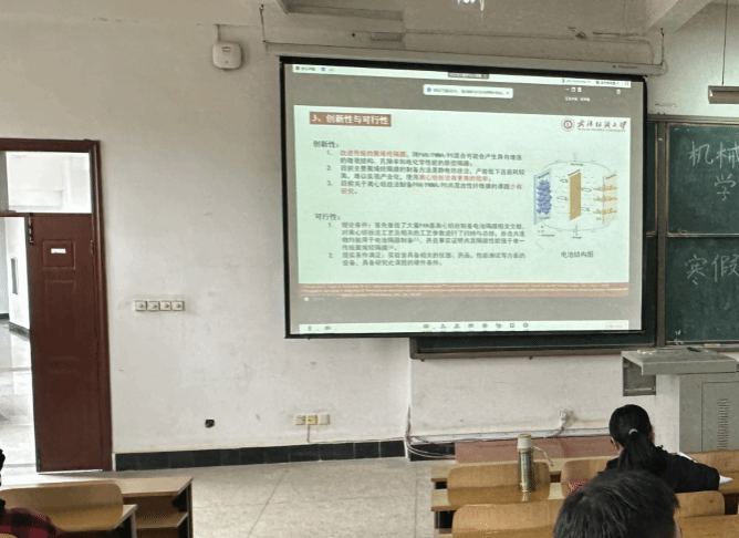 第一位是远在俄罗斯交流学习的罗丰同学线上分享了他的研究课题“基于离心纺丝的聚苯乙烯/聚苯烯腈/聚甲基丙烯酸甲酯共混改性纤维膜制备的方法”,该研究探索了不同材料在电池薄膜领域所能发挥的作用,提供了更多思路给23级同学在研究电池薄膜领域上。孙教授希望其可以继续大量阅读该领域论文,多做实验进行论证。