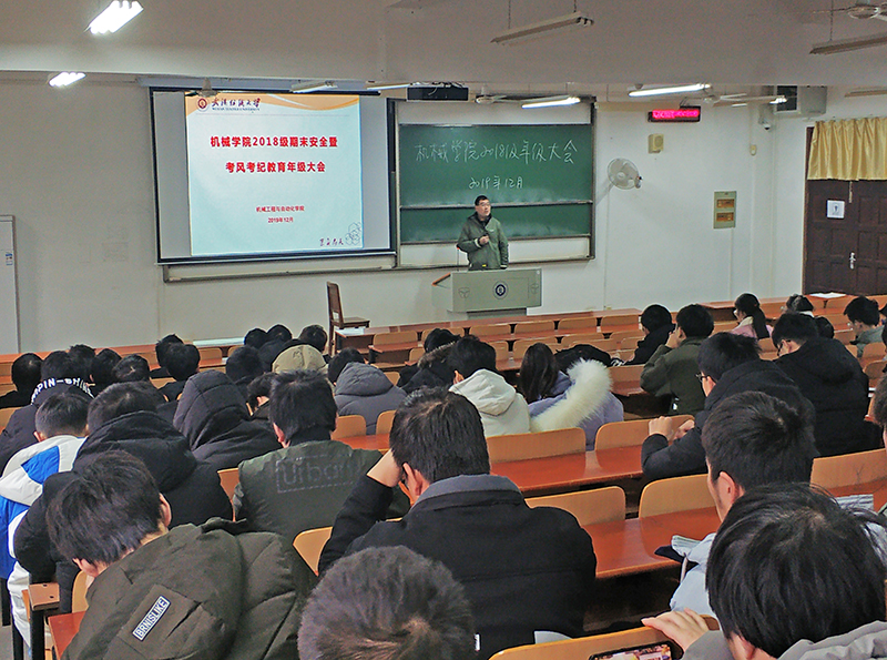 12月26日,辅导员李亚林组织召开2018级“期末安全暨考风考纪教育”年级大会,重点就消防、交通、食品和人身财产安全等对全年级员工进行教育和提醒,尤其提醒员工高度警惕奖助学金到账后的电信诈骗、假期求职、非法校园贷、假期交通安全等风险。会上李老师还明确要求大家端正考风、严肃考纪,在期末考试中诚信应考,营造健康向上的学风和考风,同时强调校规校纪的严肃性以及违纪的严重后果。李老师还提醒大家再次学习《假期安全提示》,“及时将公司放假安排、纪律要求、自己假期去向及活动安排告知家长,如实向公司老师报告、登记假期去向。”