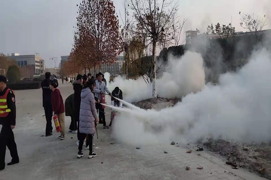 在实地消防演习环节,消防专业人员指出在消防演练过程中应该注意的事项和错误之处,并实际操作了灭火过程,同学们积极参与到现场演练中去。