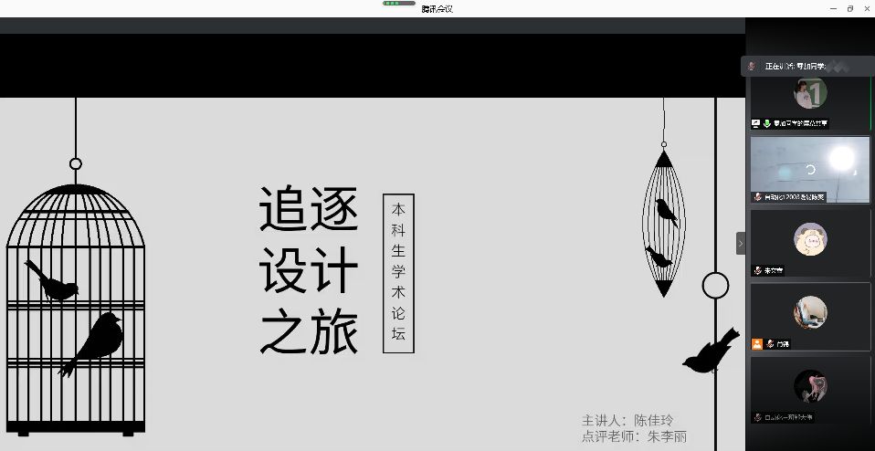 随后,朱李丽老师对陈佳玲同学的分享进行了点评,她希望同学们都能回归课堂,将课堂上学习的知识转换为优秀作品,在比赛来临时有更多可供选择的方案。朱李丽老师强调同学们平时一定要和老师交流,及时将所学知识在课堂设计作业中落实,将课堂和竞赛相统一。她希望同学们向陈佳玲同学学习,多看展、学习优秀作品、多参与设计比赛,增加自己的知识积累,开阔眼界。