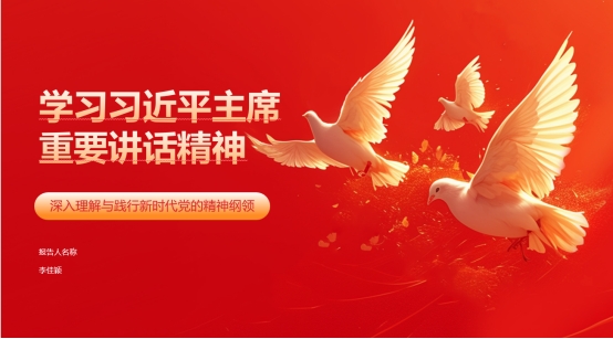随后,研究生第一党支部李佳颖同学领学习近平总书记重要讲话、重要文章精神。李佳颖同学从习近平总书记重要讲话精神的背景与意义,习近平总书记重要讲话精神的核心内容和如何践行重要讲话精神三方面阐述了习近平总书记重要讲话、重要文章精神。