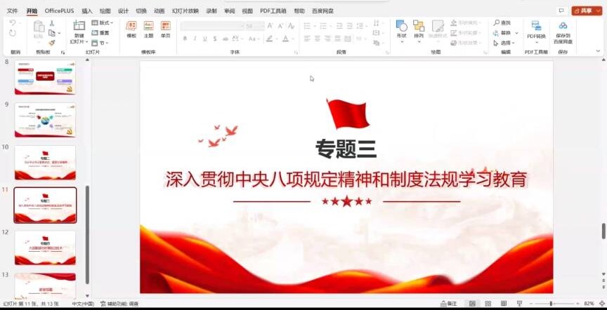 研究生第二党支部唐文豪同学围绕中央八项规定主讲了《深入贯彻中央八项规定精神和制度法规学习教育》主题党课。他从背景意义与核心内涵,当前存在的突出问题,深入推进的实践路径,典型案例借鉴四方面为我们讲述了深入贯彻中央八项规定精神和制度法规,并阐述了自己的展望:持续加强宣传教育、监督检查、学习创新和执纪问责,推动中央八项规定精神落地生根。