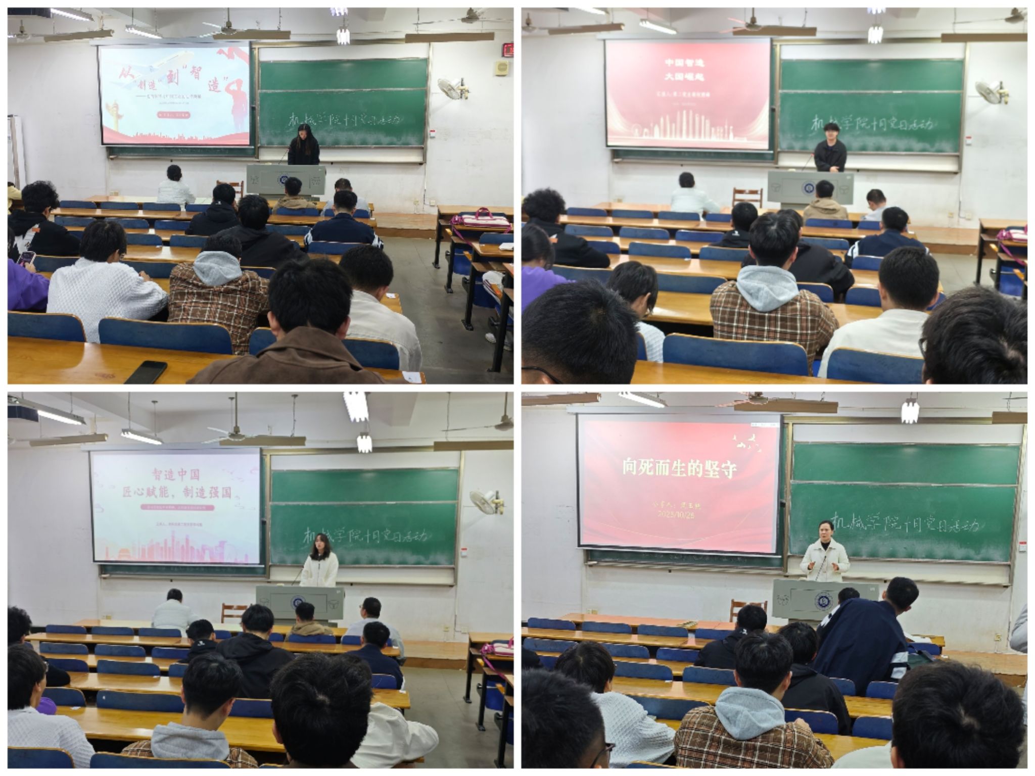 交流分享环节,郑冰璨以“党的领导与中国工业史诗跨越”为核心,分“奠基与铸魂”“开放与追赶”“创新与引领”三篇章,讲述了“一五”计划建工业体系、改革开放成“世界工厂”、推进智造技术与模式变革。李纯甄围绕制造强国战略,解读“中国制造2025”,阐述智能工厂等技术赋能,以三一重工“灯塔工厂”为例展现实践,强调“匠心”与“智造”融合,结合王军等工匠人物事迹,彰显工匠精神传承。何照峰从“制造到智造”跨越切入,对比绿皮火车与复兴号,结合华为、美的等案例讲转型;展示 2025 年量子计算等科技成就,分析国际形势、成本等挑战与国内发展优势,提出应对之策。