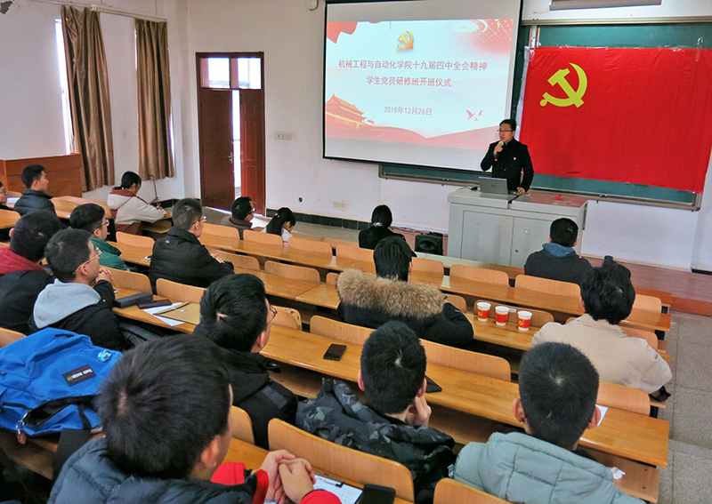 在12月26日的研修班成立仪式上,刘韦副书记带领全体员工党员认真学习了《中国共产党第十九届中央委员会第四次全体会议公报》,宣讲、解读全会精神。刘书记明确要求大家深刻、全面认识我国国家制度和国家治理体系所具有的多方面的显著优势,要更加紧密地团结在以习近平同志为核心的党中央周围,坚定信心,开拓创新,为坚持和完善中国特色社会主义制度,实现“两个一百年”奋斗目标、实现中华民族伟大复兴的中国梦而努力奋斗!
