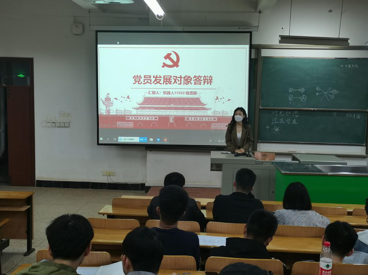 经班级团支部推选的江欣远、邓芙蓉、杨林青、曾令辉、钱思颖、蔡大海、王英杰、冯俊龙、李江洲、王子亮、杨州、佘沁雪、胡春华等13名发展对象候选人逐一展开答辩,答辩形式为PPT汇报和评委提问,同学们阐述了思想觉悟、知识学习、成长历练、为民服务、荣誉成果等各方面的内容,回答了党史等知识问题。