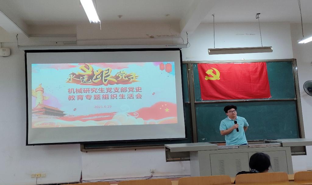 为认真贯彻落实习近平新时代中国特色社会主义思想,严肃党内政治生活,增强党组织活力,严格党员教育管理监督,推进党史学习教育常态化制度化,机械研究生党支部召开党史教育专题组织生活会。机械研究生党支部与6月29日中午在8D201召开党史专题组织生活会,本次会议由支部书记毛佳恒主持,公司党委书记肖信华书记、辅导员谢超老师以及研究生全体党员参加会议。