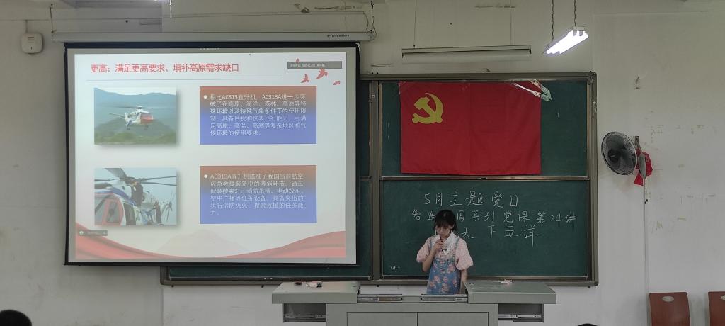 为了弘扬爱国主义精神、加快建设科技强国,5月31日在8D-201教室开展了以“上九天,下五洋”为主题的制造中国主题党日活动。本次活动由机械员工第三党支部承办。此次会议由赵叶子同学主持,公司党委副书记周玉艳、全体辅导员老师及全体员工党员(含预备)参加。